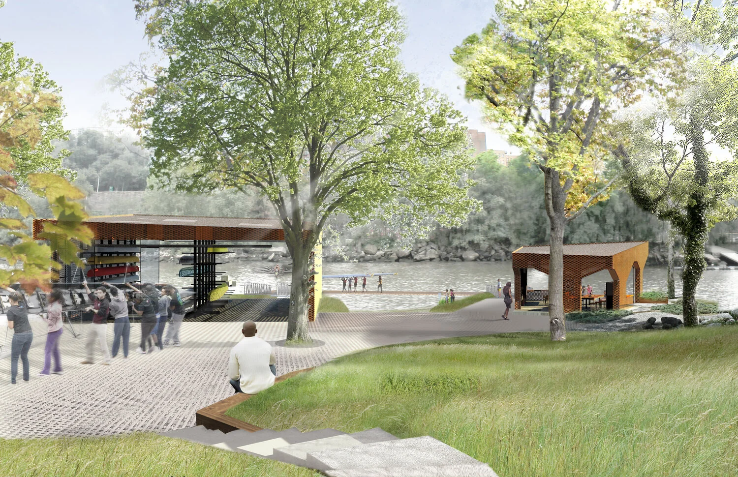 Supporting NYRP’s programming, the project embraces the natural environment as a learning opportunity. The open classroom incorporates sustainable features, such as a rainwater skylight that provides dappled light and acts as a rainfall gauge, and a water collection cistern that provides garden irrigation. Strategic interventions throughout the site enhance visitors’ understanding of the natural environment and encourage active engagement with the river.